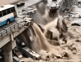 Un pont s’effondre alors que les eaux de crue atteignent leurs limites !Voir plus..