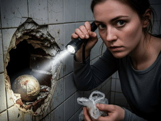 Mon mari s’enfermait dans la salle de bain tous les soirs pendant deux heures : une nuit, j’ai pris une lampe de poche, je suis allée vérifier, et derrière le carrelage, j’ai trouvé un trou – et à l’intérieur se trouvaient d’étranges sacs…
