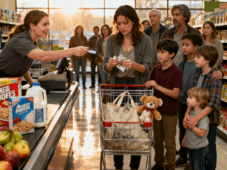 Une mère de quintuplés n’a pas les moyens de payer ses courses, une voix derrière la caméra lui répond : « Votre facture est déjà réglée. »