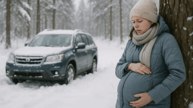 Mary comprit : si elle restait dans la voiture, elle allait geler. Son téléphone n’avait plus de réseau. Désespérée, elle sortit, espérant qu’un chauffeur ou une équipe de secours passerait. Mais la route forestière était déserte. Elle tenait à peine debout, son ventre lui faisait terriblement mal et le bébé était agité.