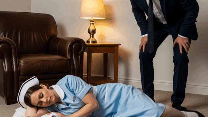 Sur le sol, à la douce lueur de la lampe, gisait une jeune femme en uniforme turquoise. Sa tête reposait sur une serviette pliée, ses cils noirs caressant ses joues tandis qu’elle dormait profondément. Blottis contre elle, ses deux fils de six mois – ses précieux jumeaux – étaient enveloppés dans des couvertures moelleuses, leurs petits poings serrés contre ses bras.