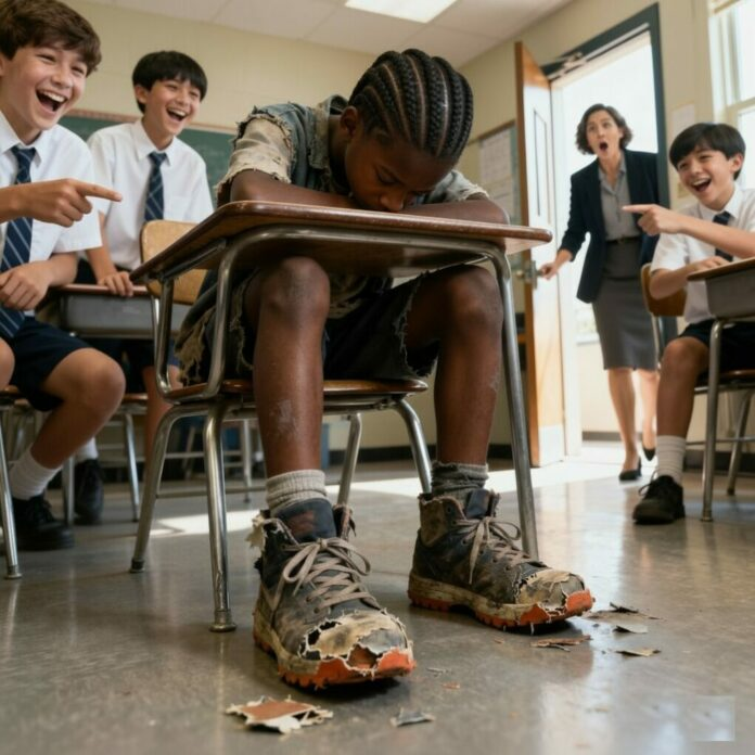Il se leva, nerveux, la voix basse. « Je sais que certains d’entre vous se moquent de mes chaussures. Elles sont vieilles. Mais je les porte parce que ma mère n’a pas les moyens d’en acheter des neuves pour le moment. Elle a deux boulots pour que ma sœur et moi puissions manger. »