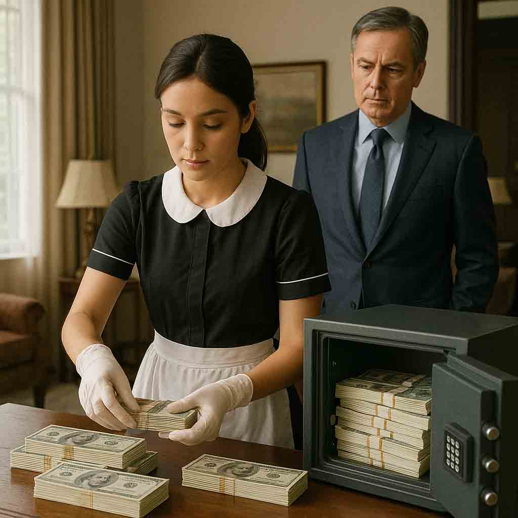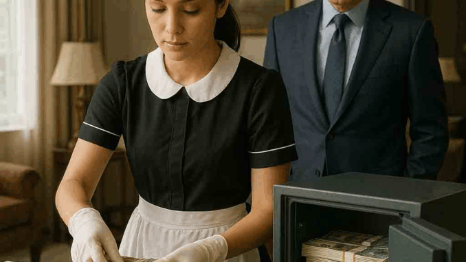 Il laissa volontairement la porte de son bureau privé déverrouillée et l’immense coffre-fort en acier grand ouvert. À l’intérieur, des piles de billets de cent dollars soigneusement reliés et des plateaux de bijoux en or brillaient sous la faible lumière. Puis, caché juste derrière la porte, il attendit.