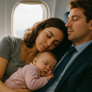 Cependant, lorsque la femme et le bébé s’installèrent à côté de lui, il se prépara à un vol long et bruyant.
