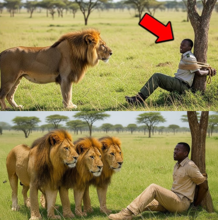 Un lion trouve un garde forestier attaché dans la savane — Ce qui s’est passé ensuite a choqué tout le monde