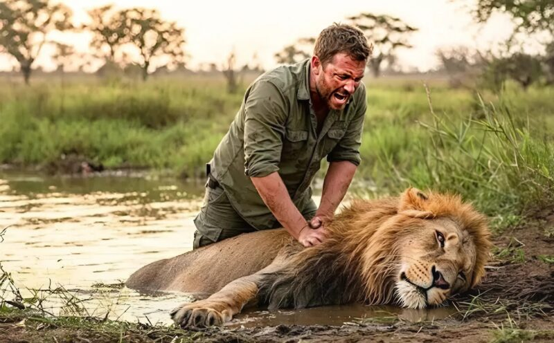Finalement, au prix d’efforts incroyables, il parvint à hisser l’animal sur la berge. Le lion gisait immobile, la poitrine ne se soulevant pas. Désespéré, l’homme s’agenouilla près de lui et commença un massage cardiaque. Ses paumes frappaient encore et encore la poitrine forte mais inerte.