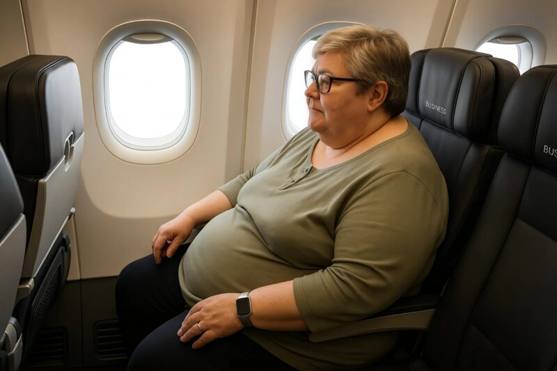 « Les gros devraient rester chez eux et ne pas prendre l’avion », m’a-t-elle lancé sèchement. « Tu penses jamais aux autres ? »