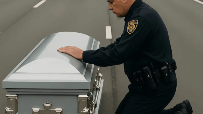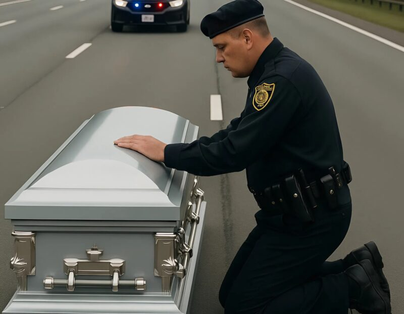 Lors de ma patrouille matinale sur l’autoroute, j’ai remarqué quelque chose d’étrange. La route, droite et déserte, s’étendait sur des kilomètres, et soudain — en plein milieu de l’asphalte, sur la voie de droite — se dressait un cercueil blanc.