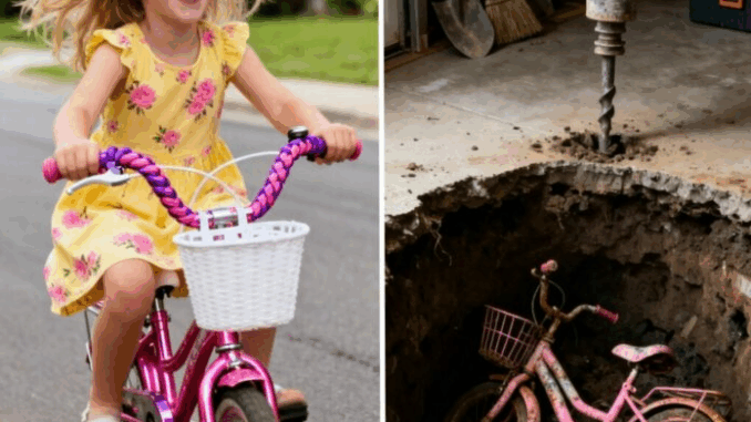 Sous une dalle de béton recouverte de poussière et de rouille, gisait un petit vélo rose , le panier blanc écrasé mais encore reconnaissable. Des rubans violets et roses flottaient faiblement au guidon.