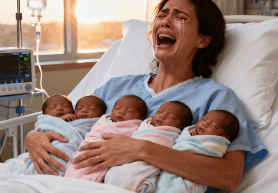 La maternité résonnait de cinq petites voix qui criaient à l’unisson. La jeune mère, épuisée, souriait à travers ses larmes en contemplant ses quintuplés. Ils étaient petits, fragiles, mais parfaits.