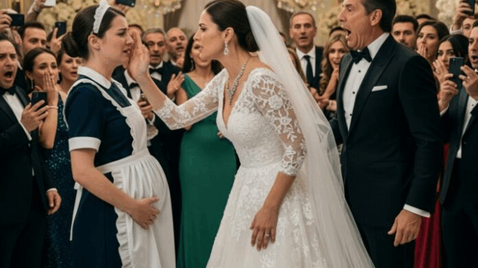 Angela se figea, les yeux rivés sur la tache écarlate qui s’étendait sur la soie. Son sourire parfait se transforma en fureur. Avant que quiconque puisse intervenir, elle leva la main et gifla Naomi. Le claquement de la gifle résonna plus fort que l’orchestre.