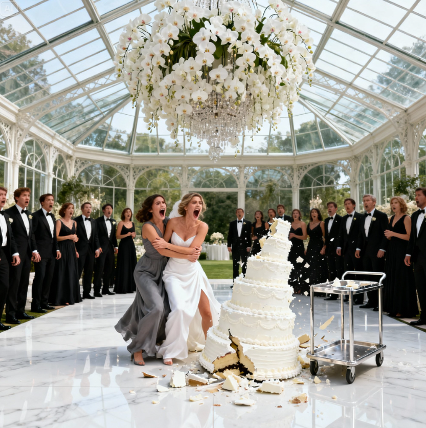 Le bruit fut cataclysmique. La tour de sept étages vacilla un instant avant de s’écraser sur le sol en marbre. La porcelaine vola en éclats. Des couches de génoise et de crème explosèrent, éclaboussant les invités du premier rang. Des feuilles d’or et du glaçage blanc recouvraient ma robe et le smoking de David.