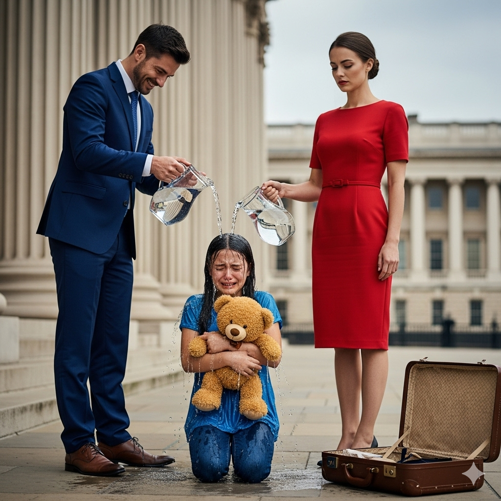 Diana sogghignò. Un secchio d’acqua fredda fu gettato sulla ragazza, inzuppandole i vestiti e facendola rabbrividire. La sua valigia si spalancò sulla soglia. Gli astanti guardarono in silenzio, anche se nessuno osò intervenire. Diana sbatté la porta, lasciando Emily inginocchiata al sole, bagnata e tremante, con il suo orsacchiotto stretto tra le mani.