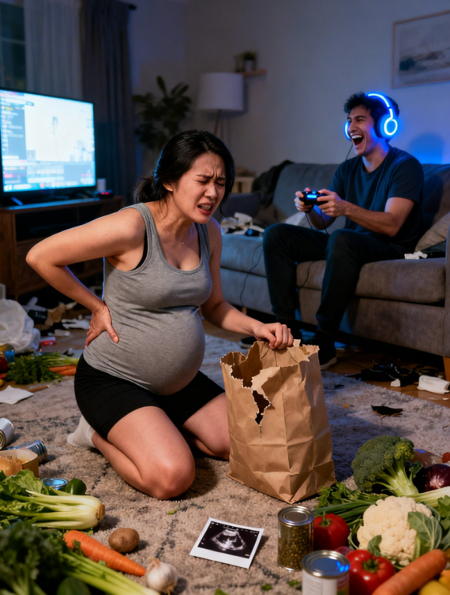 Rimasi lì, con una mano appoggiata sulla pancia e l’altra premuta contro il muro, le borse della spesa ai miei piedi come una prova. La mia mente fece qualcosa di strano: si fece silenziosa, come se qualcuno avesse abbassato il volume del mondo. Sentii le risate, ma sembravano lontane, attutite da uno spesso strato di incredulità.