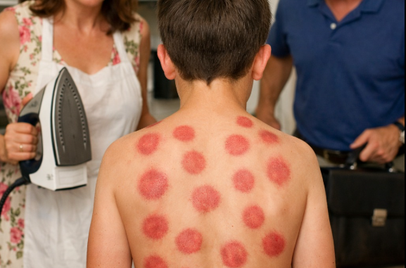 Suo figlio di nove anni, Evan , era in piedi, schiacciato contro il muro, con la camicia sollevata. Le sue spalle tremavano. A pochi centimetri dalla sua pelle, Claire , moglie di Daniel da un anno, teneva un ferro da stiro fumante nella sua mano curata.