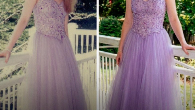Era un abito di raso color lavanda con fiori ricamati sul corpetto e delicate spalline sottili che brillavano alla luce. Le foto che la ritraevano con quell’abito prima del diploma di scuola superiore sembravano uscite da una rivista per adolescenti di fine anni ’90.